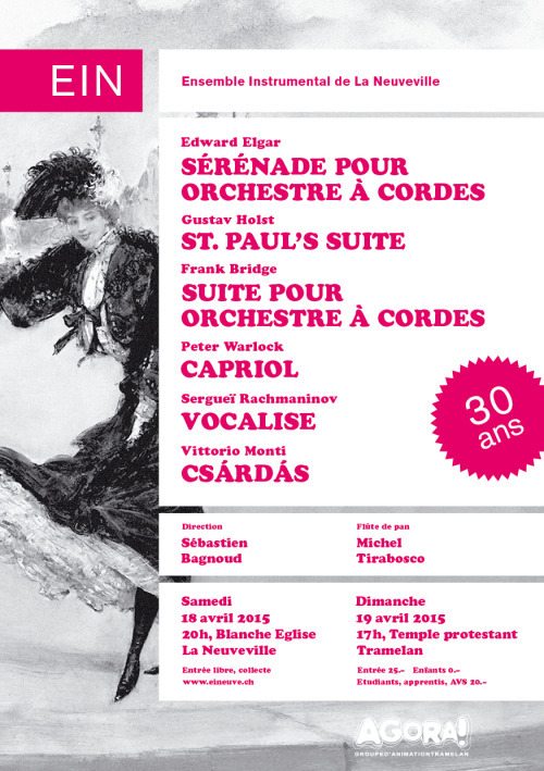 Sébastien Bagnoud  reprend la direction de l’Ensemble Instrumental en 2014, pour deux programmes intenses, puisqu’il organise les deux premiers concerts-anniversaire des 30 ans de l’EIN, qui accompagne pour la deuxième fois au mois d’avril 2015 le très grand flûtiste Michel Tirabosco. Vous pouvez d’allieurs écouter un extrait du concert, enregistré par Orpheo Studio.
