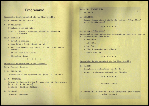 Les trois décennies et demie d’activités musicales de l’Ensemble Instrumental de La Neuveville se sont révélées extrêmement riches, fascinantes, et sont le témoin d’une multitude de rencontres fructueuses et passionnantes. Nous ne pouvons malheureusement pas raviver ici tous les souvenirs qu’évoquent ces trente-cinq années de musique et d’amitié : en plus de la présentation de l’orchestre, voici simplement quelques lignes qu’il nous tenait à cœur de partager avec notre cher public, sans qui l’EIN ne serait rien de ce qu’il est aujourd’hui.