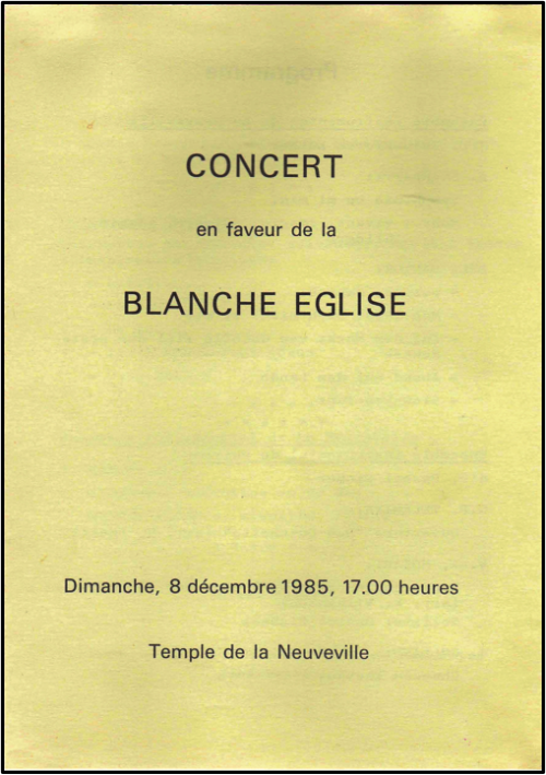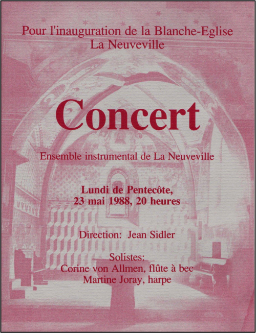 L’existence de l’EIN est en fait étroitement liée au lieu de culte neuvevillois. En effet, il y joue lors de l’inauguration de la Blanche-Eglise en 1988, puis plusieurs fois par année, tous les ans.