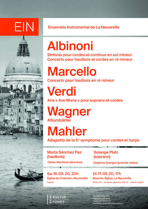 Alors que l’EIN s’apprête à célébrer ses 35 années d’existence au mois de mai 2020 avec un programme autour de Venise, la crise sanitaire liée au Covid-19 oblige l’orchestre à annuler répétitions et concerts de la première moitié de 2020. L’EIN décide de publier tout de même l’affiche prévue pour ce programme.