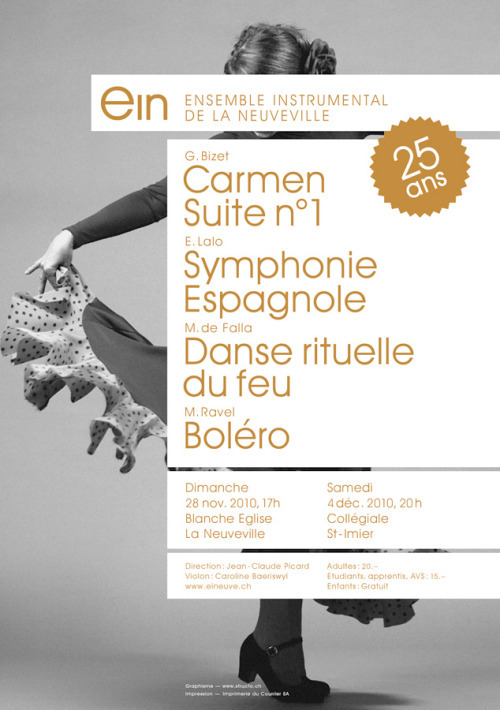 En 2007, après 12 ans à la tête de l’EIN, Patrick Lehmann cède la place au jeune et merveilleusement talentueux Jean-Claude Picard. Grâce à ses immenses qualités, musicales mais aussi humaines, il va inspirer à l’Ensemble et à tous les musiciens une grande précision et une recherche de musicalité nouvelle. A la fois fougueux et distingué, audacieux et chaleureux, profondément humain et surtout d’un optimisme sans faille, il dirige l’Ensemble pendant 6 années qui seront extrêmement enrichissantes, pour les musiciens mais également pour son public, fidèle aux rendez-vous à la Blanche-Eglise, souvent “pleine à craquer”. Un programme espagnol enflamme les 25 ans de l’EIN avec notamment la Danse rituelle du feu de de Falla, la Symphonie Espagnole d’Edouard Lalo, interprétée par la violoniste Caroline Baeriswyl et l’incontournable Bolero de Ravel.